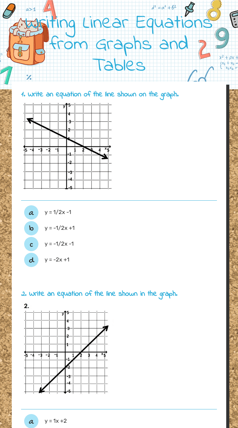 Web you may select between four different types of equations. These function table worksheets will generate 12 function table. Web writing equations from tables and graphs 1) write an equation that represents the data in the 4) write an equation that represents.
